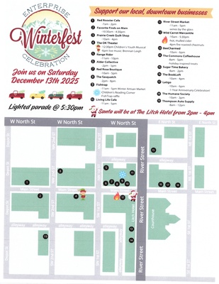 Celebrate the holiday season in downtown Enterprise! Fill your stockings with gifts from local businesses, enjoy the yuletide tradition of fire roasted chestnuts, share your Christmas wishes with Santa, and much more merriment!
