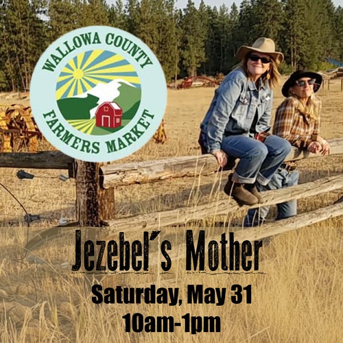 Jezebel's Mother at Wallowa County Farmers Market Jezebel’s Mother is playing at the market this Saturday!!! Come down for some great music food and art! Set a Reminder Enter your email address below to receive a reminder message. Email address Select the amount of Days before the event -- Select Days Before Event -- 1 Day 2 Days 3 Days 1 Week Captcha Validation Please complete the Captcha Submit Date and Time Saturday May 31, 2025 10:00 AM - 1:00 PM PDT Saturday, May 31st, 2025 10AM-1PM Location Joseph, Oregon Set a Reminder Enter your email address below to receive a reminder message. Email address Select the amount of Days before the event -- Select Days Before Event -- 1 Day 2 Days 3 Days 1 Week Captcha Validation Please complete the Captcha Submit Share × Print Email Add to Calendar Facebook Twitter LinkedIn Tell a Friend × Select Calendar Type × Google Yahoo iCal (Outlook, Apple, or other)