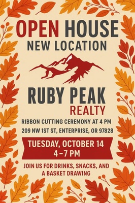 Join the Wallowa County Chamber in celebrating the official opening of Ruby Peak Realty's new location in Enterprise! We'll gather to cut the ribbon, welcome this growing business to their new space, and connect with community members! All are welcome-come show your support and help us celebrate local success!